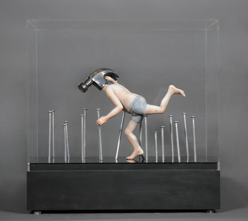 Hammer Head, 1987. Patti Warashina (American, b. 1940). Clay, plexi, and wood, Purchased by the Canton Museum of Art, 87.10