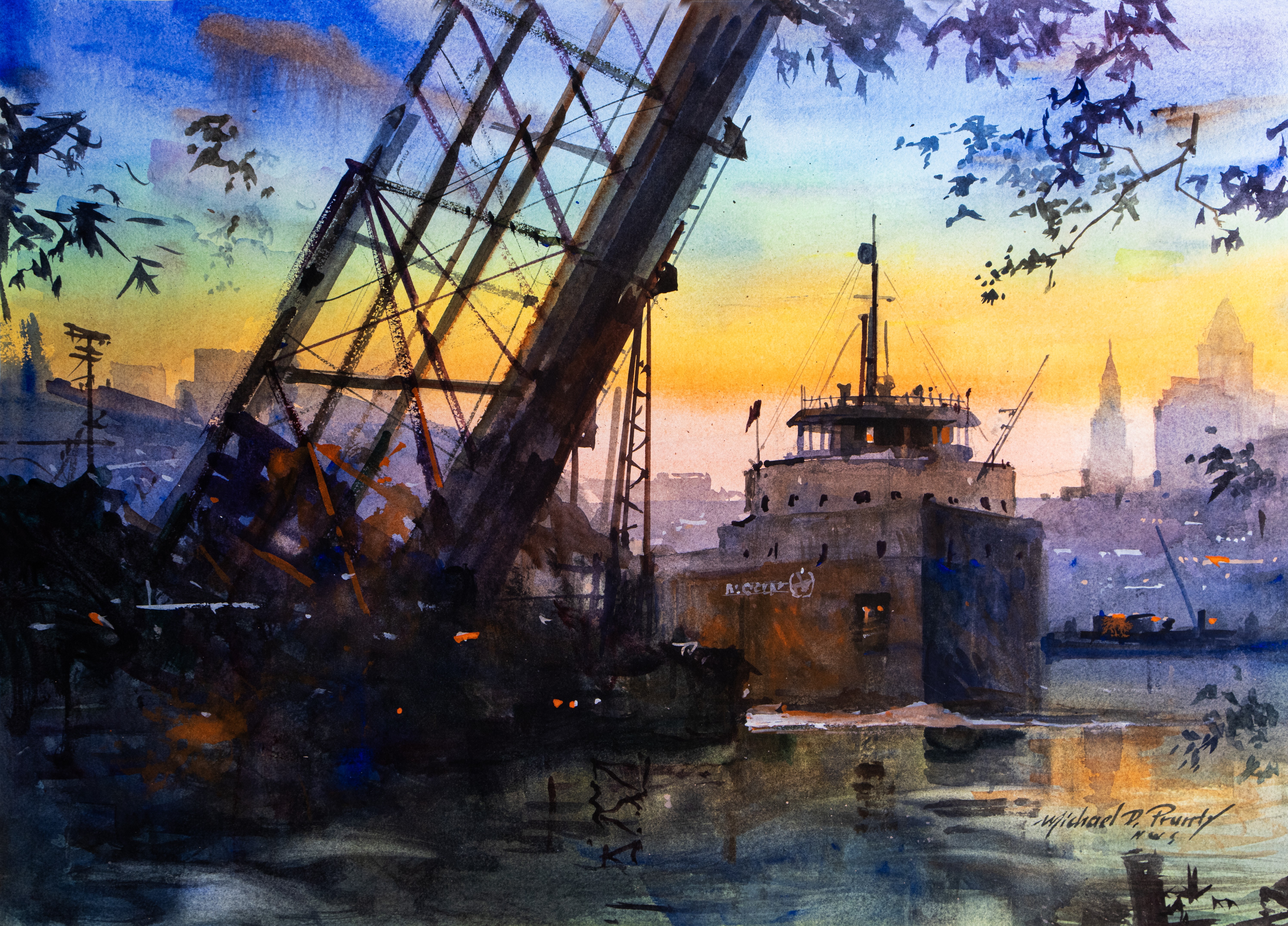 Michael Prunty, Ore Boat on the Cuyahoga, n.d., watercolor on paper, 2024.6.