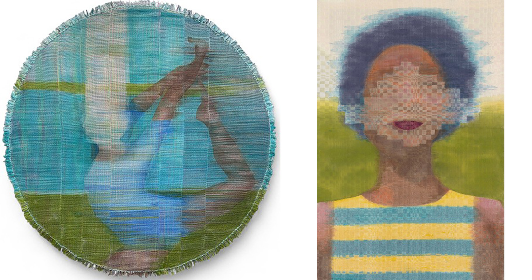 Melissa English Campbell (b. San Francisco, 1969) is a visual artist whose work bridges the tactile discipline of weaving with the fluid expressiveness of painting. Informed by a rootless upbringing and immersion in European, Mediterranean and American cities, she is motivated by a search for belonging and identity. Drawing on the cultural fluidity of a nomadic childhood she builds pieces that evoking a dialogue between order and dissolution.